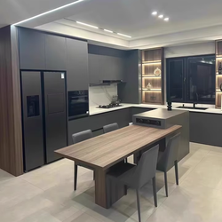 Armarios de cocina de lujo totalmente personalizados hechos en China con acabado lacado o laminado para ventas de exportación al por menor