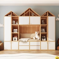 Juego de muebles de dormitorio modular multifuncional para niños, cama doble de madera con armario de almacenamiento
